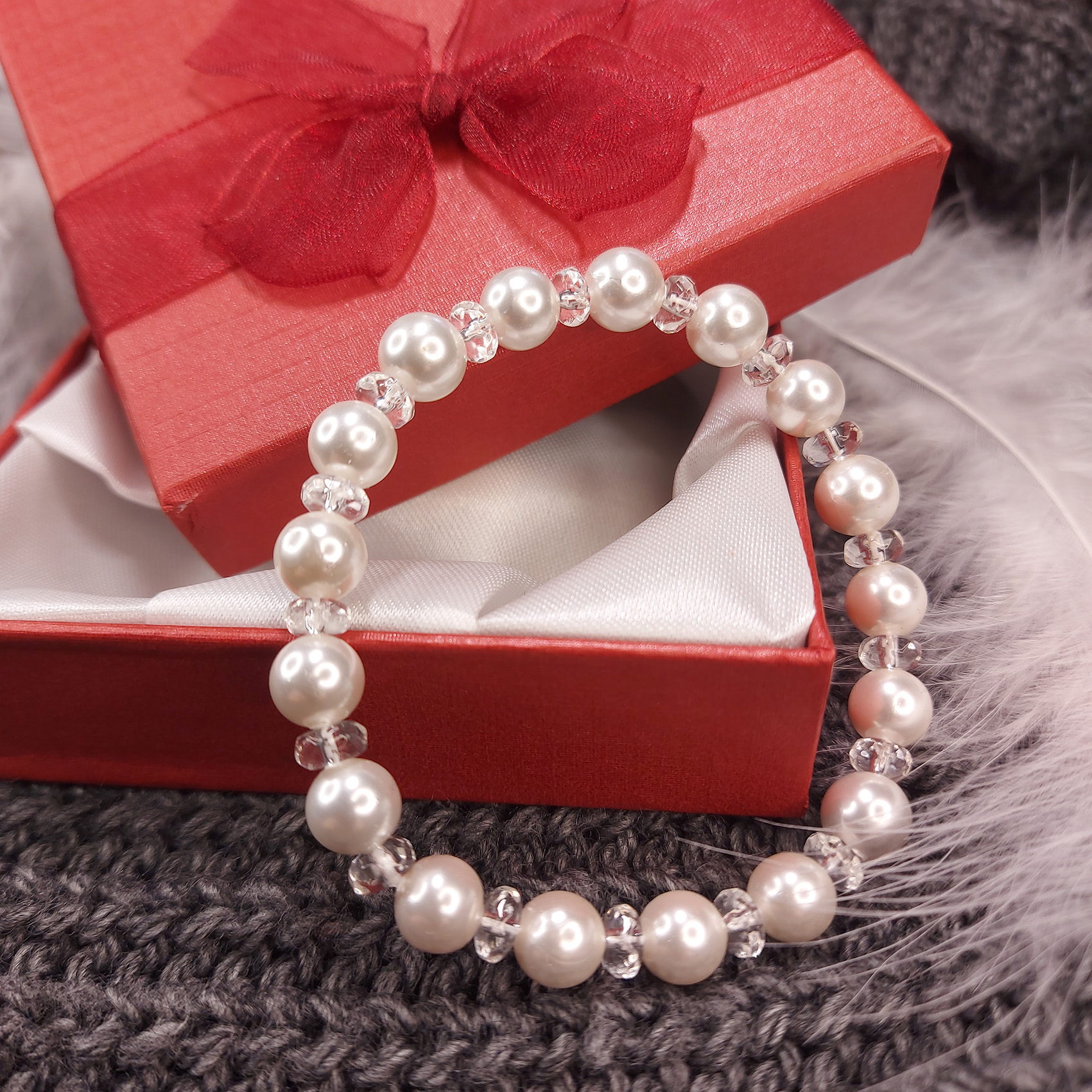 Lasturové perly a křišťálové rondelky. Perly jsou nádherné, magické a opředené mnoha legendami. Ta nejvíce známá je o tom, že když jsou darovány, tak přinášejí štěstí! A krišťál vám dodá harmonii a čistotu. Tak neváhejte a darujte vánoční štěstí. Dodáváme dárkově zabalené v krásné krabičce. Velikost perel je 8 mm.